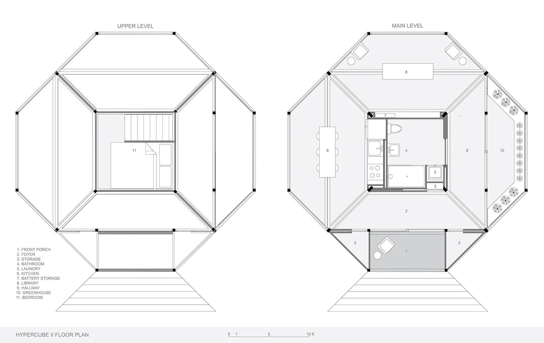 The key element behind the Hypercube design is its central CORE- a 100 sq ft prefab module that integrates kitchen, bathroom and bedroom along with water filtration and energy capture/storage.